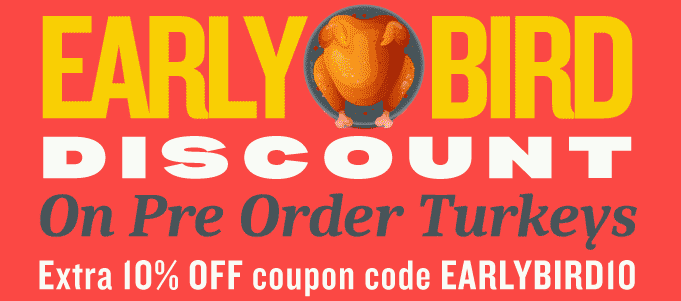 Gobble up MeatMarket's Early Bird Turkey Sale - an unbeatable discount you can't resist! Save an extra 10% by pre-ordering your turkey today!